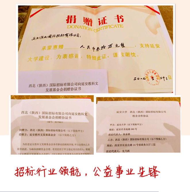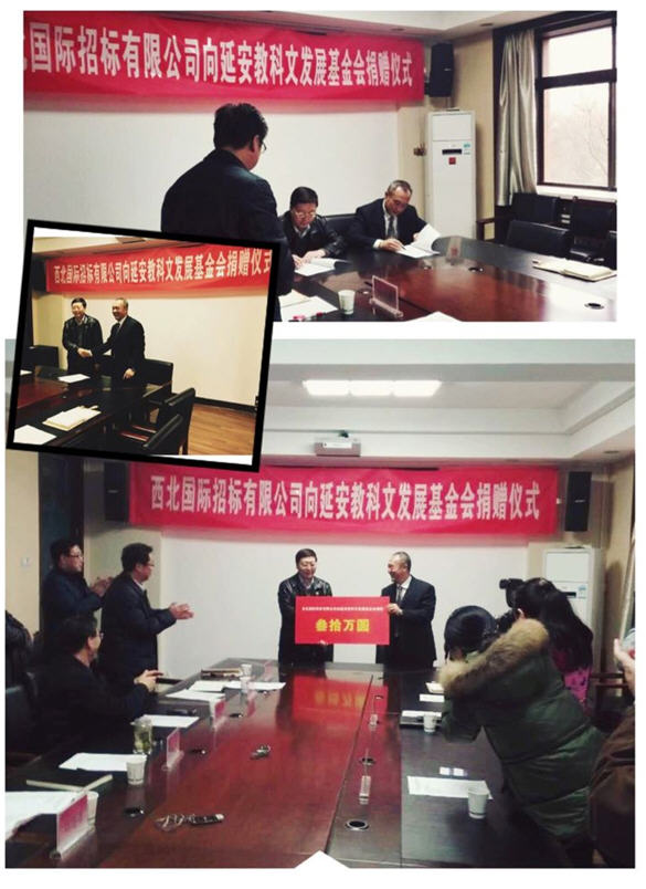 西北(陜西)國際招標(biāo)有限公司向延安教科文發(fā)展基金會捐贈儀式
