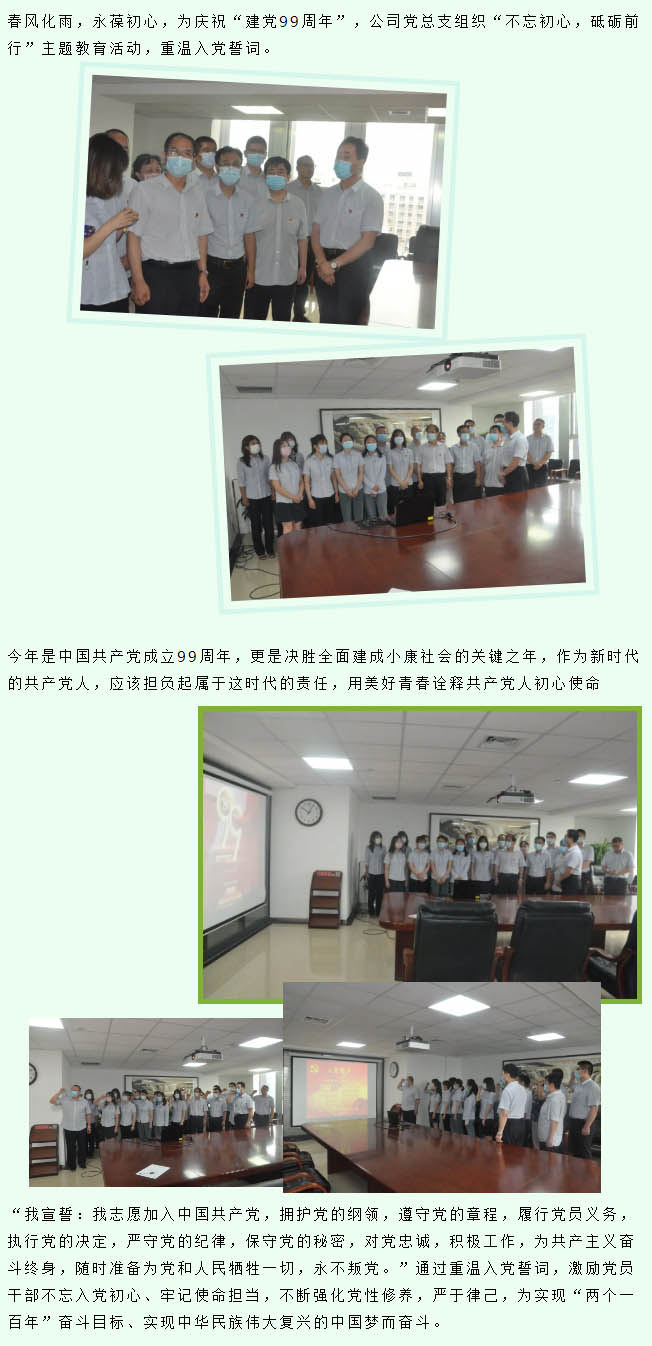 熱烈慶祝中國共產(chǎn)黨建黨99周年 不忘初心,砥礪前行——公司黨總支組織重溫入黨誓詞儀式