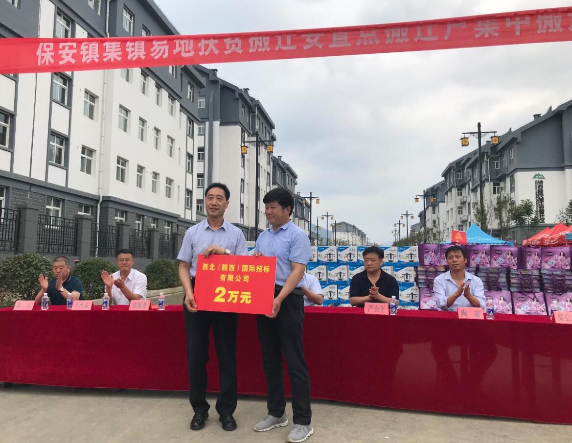 2019年6月26日,洛南縣保安鎮(zhèn)人民政府組織舉辦了保安鎮(zhèn)易地扶貧移民搬遷戶集中入住捐贈儀式,縣委常委、常務(wù)副縣長李凌云同志,以及西北(陜西)國際招標(biāo)有限公司、中建一局西北公司等相關(guān)單位參加。捐贈儀式上,我公司胡亞夫主任代表公司扶貧獻(xiàn)愛心向洛南縣保安鎮(zhèn)人民政府捐款2萬元整。