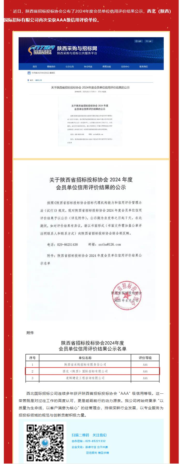 喜報(bào)--我公司再次獲陜西省招標(biāo)投標(biāo)協(xié)會(huì)AAA級(jí)企業(yè)信用評(píng)價(jià)單位