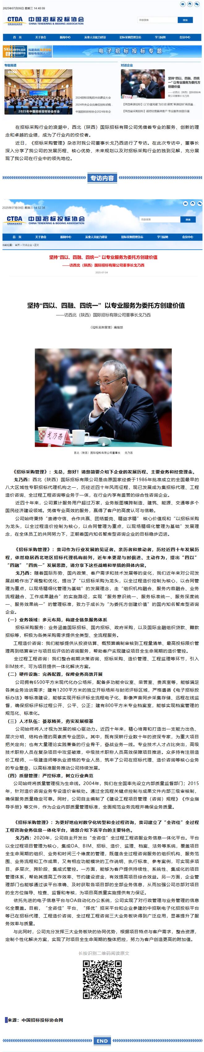 堅持“四以、四融、四統(tǒng)一” 以專業(yè)服務(wù)為委托方創(chuàng)建價值——西北國際招標公司董事長戈乃西接受《招標采購管理》雜志專訪