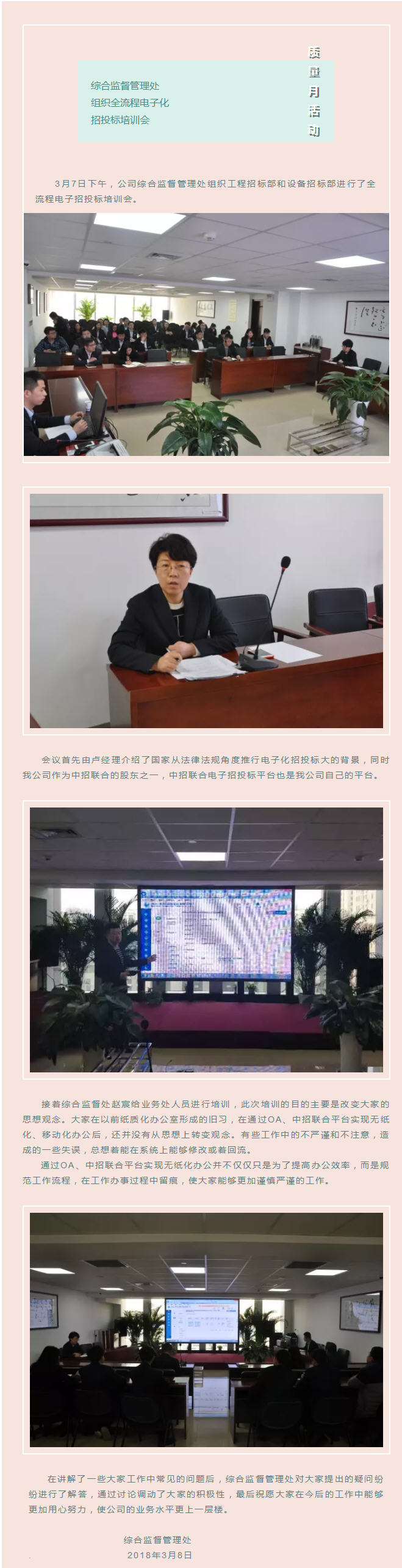 質(zhì)量月活動(dòng)-綜合監(jiān)督管理處組織全流程電子話招投標(biāo)培訓(xùn)會(huì)