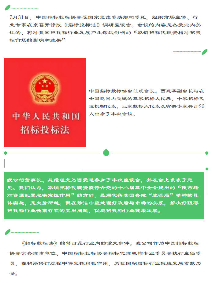 中國(guó)招標(biāo)投標(biāo)協(xié)會(huì)組織召開修改《招標(biāo)投標(biāo)法》座談會(huì)
