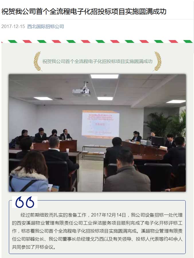 祝賀我公司首個全流程電子化招投標項目實施圓滿成功