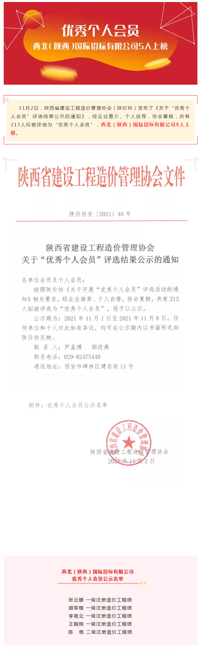 “優(yōu)秀個(gè)人會(huì)員”名單公示!我公司5人上榜!