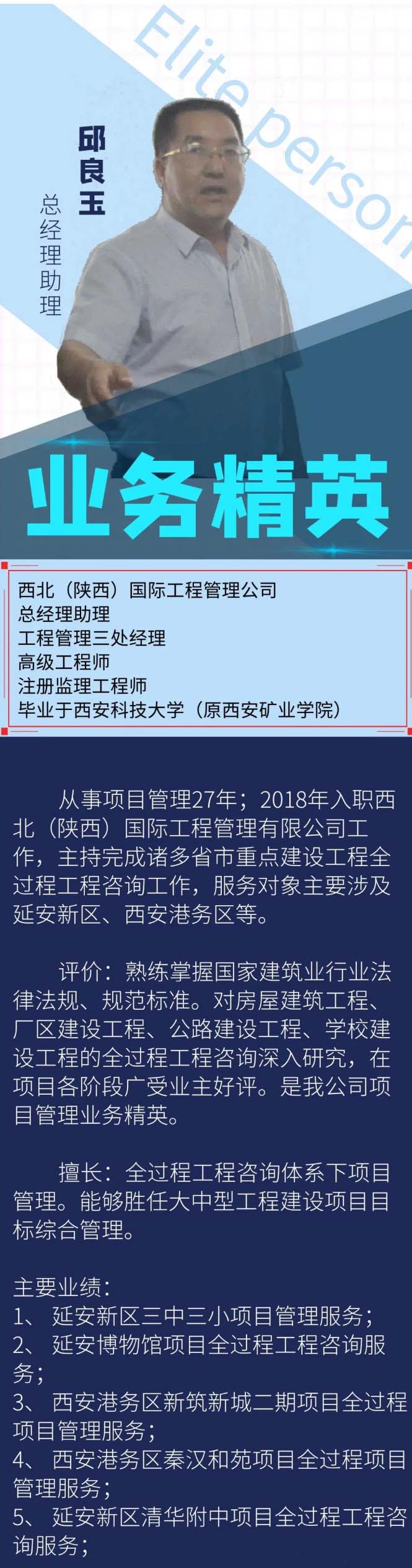 西北國際工程管理公司業(yè)務(wù)精英——項(xiàng)目管理三處 邱良玉