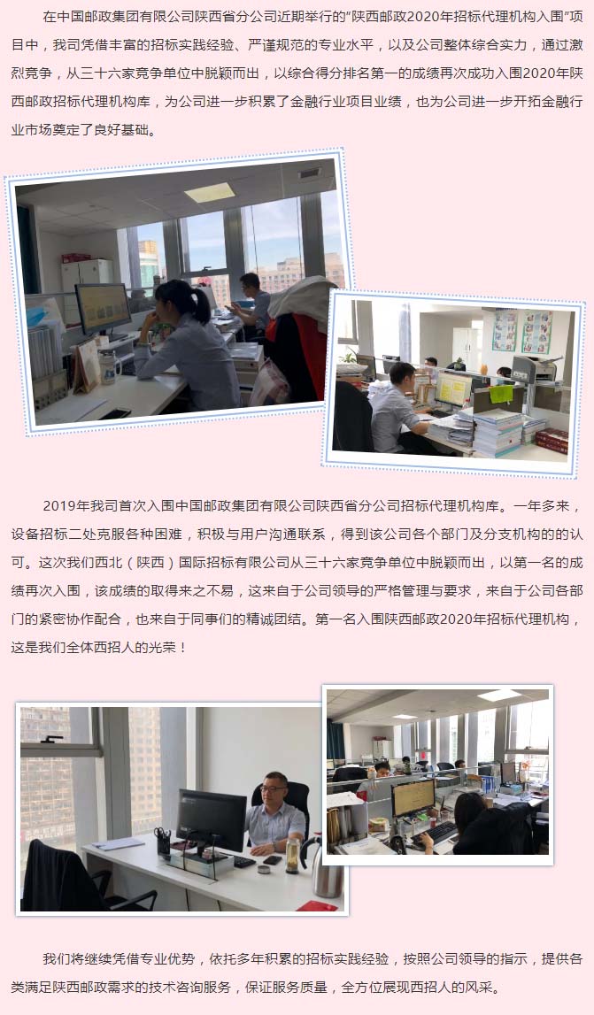 我司再次成功入圍陜西郵政2020年招標代理機構