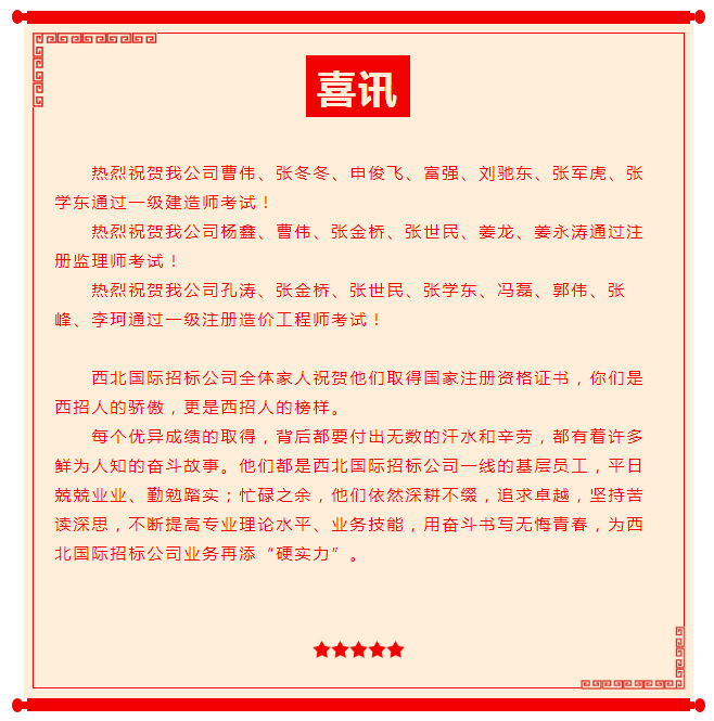實(shí)力上榜——恭喜西北國際招標(biāo)公司17人獲得國家注冊(cè)執(zhí)業(yè)資格