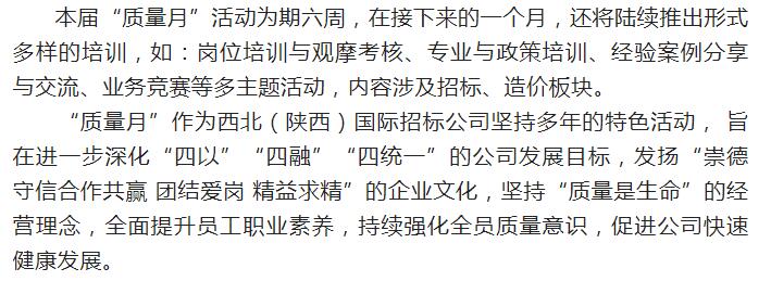 西北國際招標公司第二十三屆“”質(zhì)量月”培訓活動報道(第三周)