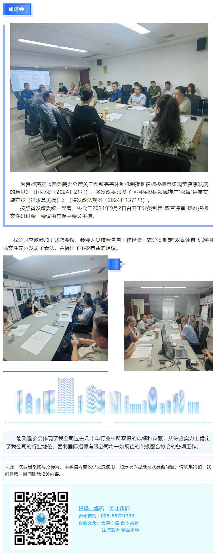 我公司應(yīng)邀參加協(xié)會組織分類制定“雙盲評審”標(biāo)準(zhǔn)招標(biāo)文件研討會