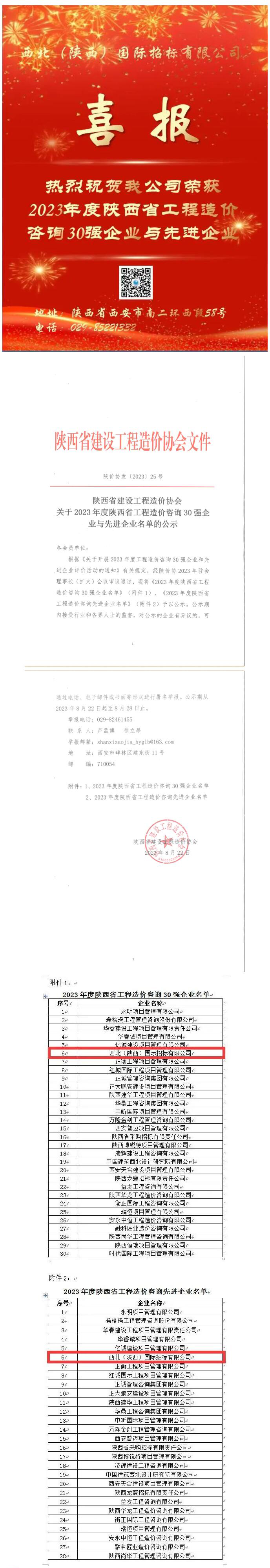 熱烈祝賀我公司榮獲2023年度陜西省工程造價(jià)咨詢30強(qiáng)企業(yè)與先進(jìn)企業(yè)