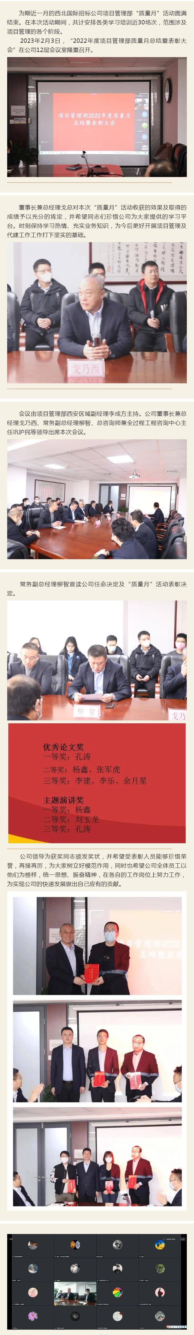西北國(guó)際招標(biāo)公司項(xiàng)目管理部召開(kāi)“2022年度項(xiàng)目管理部質(zhì)量月總結(jié)暨表彰大會(huì)”