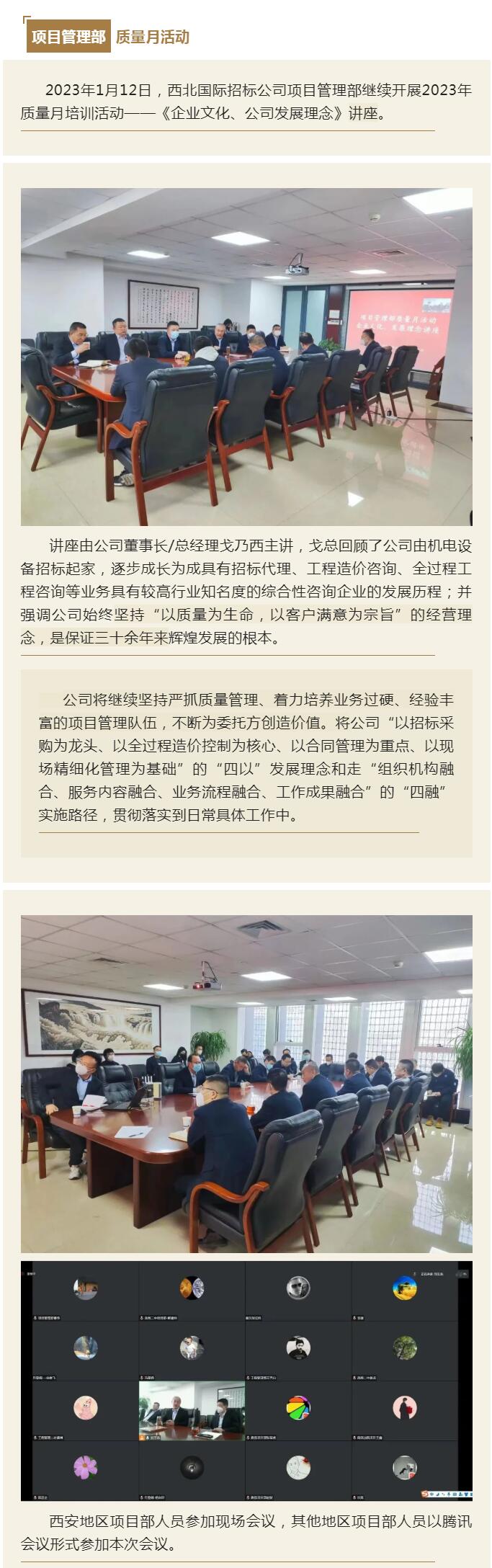西北國(guó)際招標(biāo)公司項(xiàng)目管理部舉行2022年度總結(jié)會(huì)暨“質(zhì)量月”活動(dòng)啟動(dòng)會(huì)