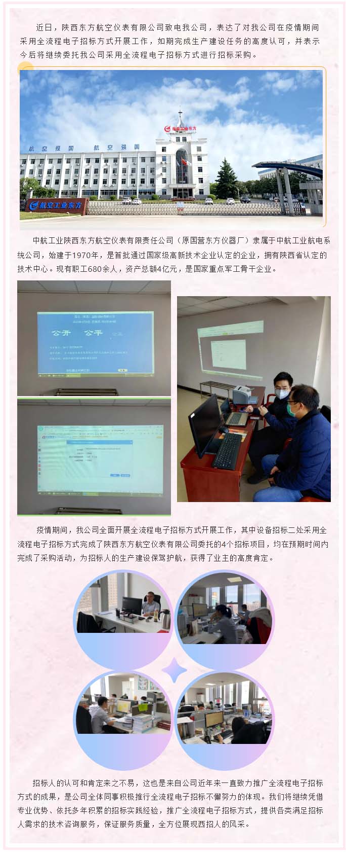 陜西東方航空儀表有限公司致電我公司,將繼續(xù)采用全流程電子招投標(biāo)方式進(jìn)行招標(biāo)采購(gòu)
