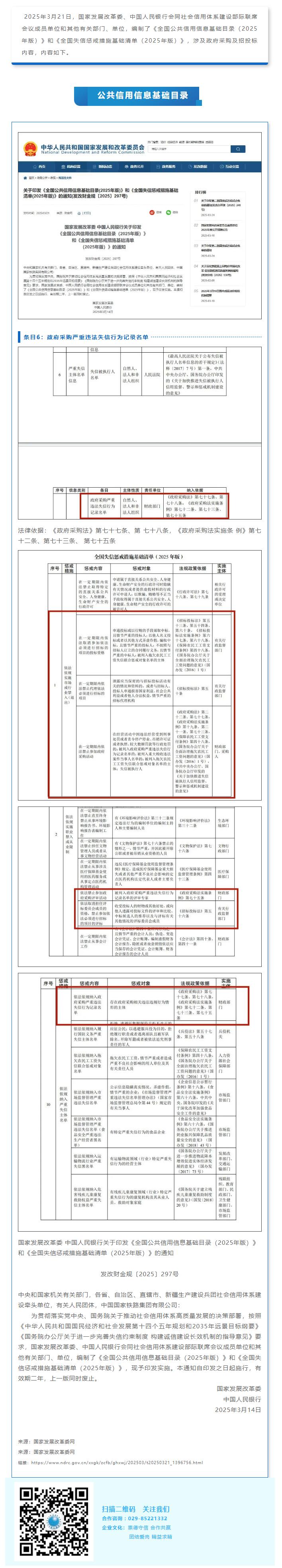《全國公共信用信息基礎(chǔ)目錄(2025年版)》和《全國失信懲戒措施基礎(chǔ)清單(2025年版)》發(fā)布!涉及政府采購!