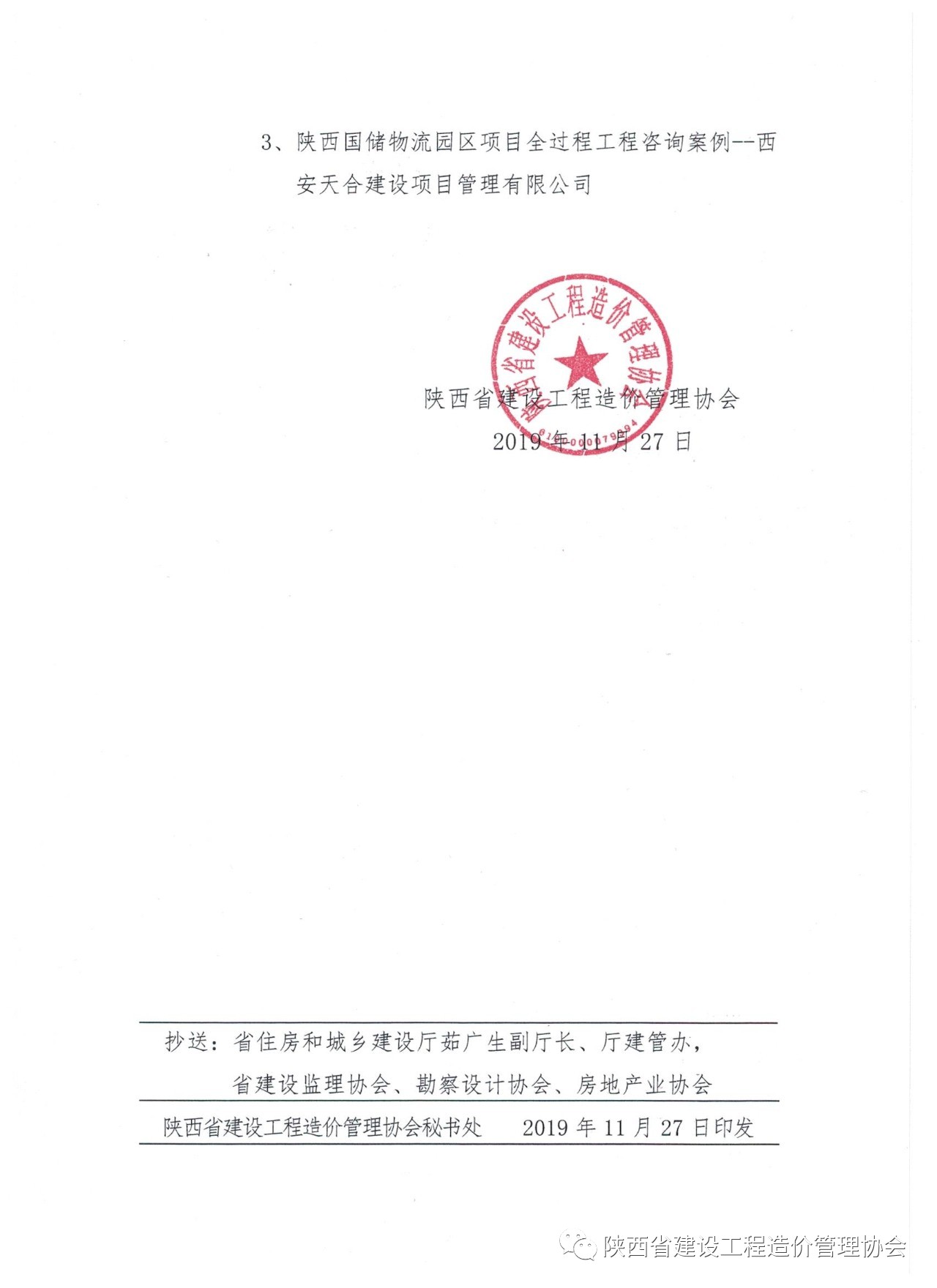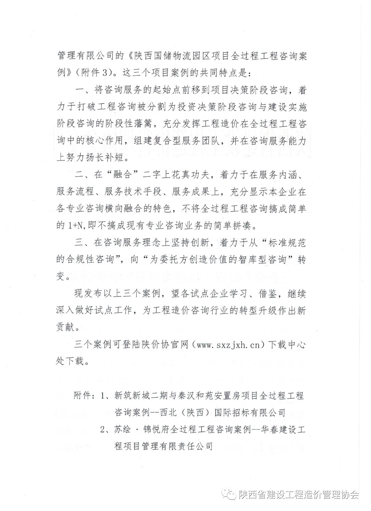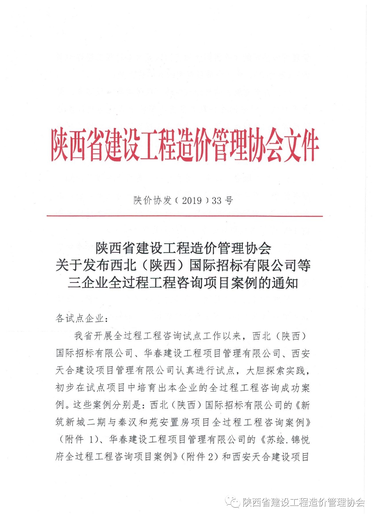 陜價協(xié)關(guān)于發(fā)布西北(陜西)國際招標(biāo)有限公司等三企業(yè)全過程工程咨詢項目案例的通知